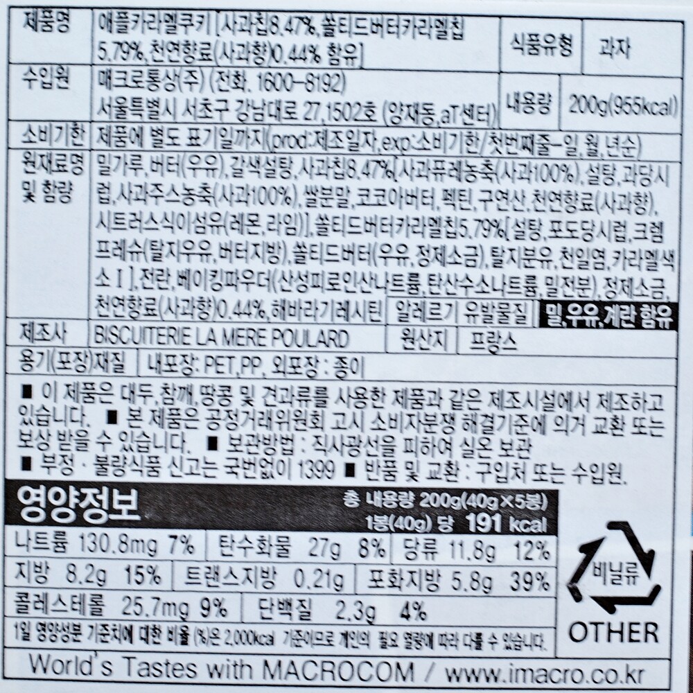 *200g 애플, 초콜릿 쿠키는
